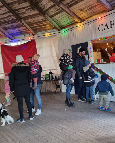 Mysigt kafé med kaffe, snacks och måltidsalternativ – catering finns tillgänglig för privata evenemang.
